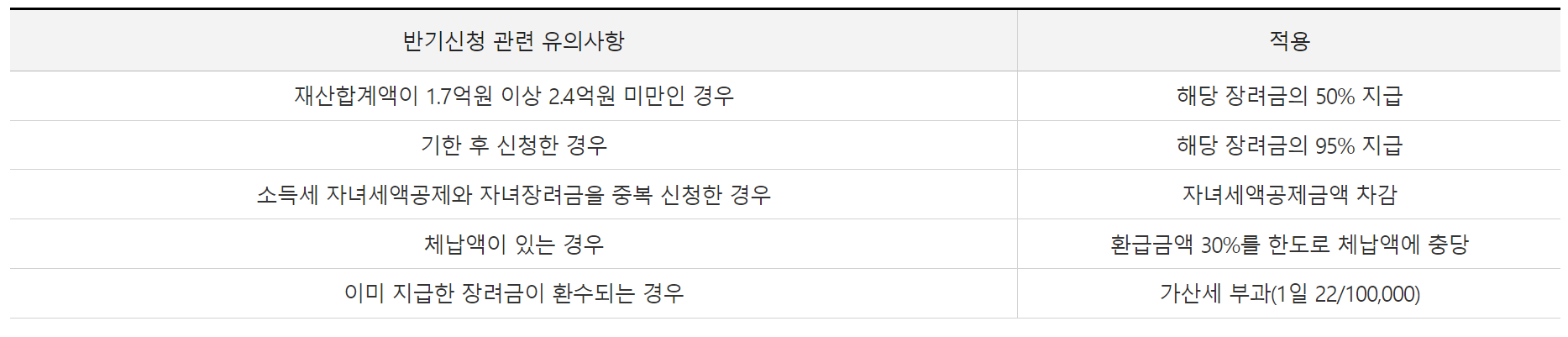 셋째, 반기신청은 2023년에 근로소득이 있는 경우에만 가능합니다. 만약 사업소득 등 다른 소득이 있는 경우에는 5월 정기신청을 해야 하며, 이 경우 2024년 8월에 정산 및 지급이 이루어집니다.