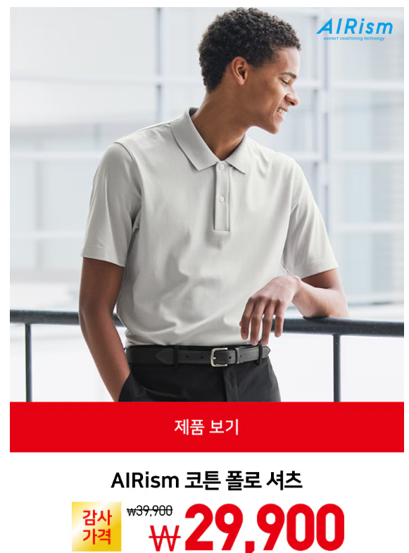 주요 할인 품목으로는 에어리즘 이너웨어, 감탄 재킷과 팬츠, 린넨 블렌드 오픈칼라 셔츠 등이 있습니다.